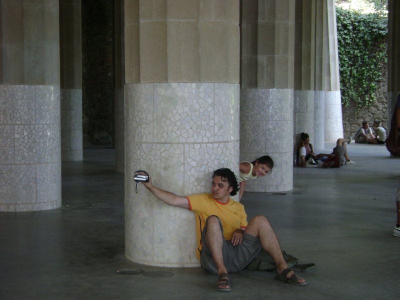 Să nu uit, în parc Güell, am stat pe jos, am ascultat muzică clasică interpretată la vioară şi contrabas de 2 români, ţigani în proporţie de 90%), am filmat şi-am făcut poze, m-am umplut de praf şi m-am bronzat pe picioare cu model de la sandale. Cam aşa ceva: