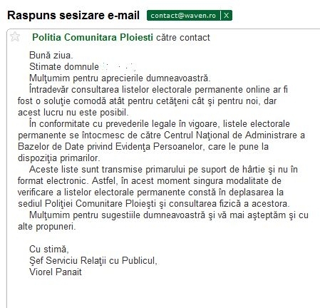 Răspunsul primit, mai jos:
