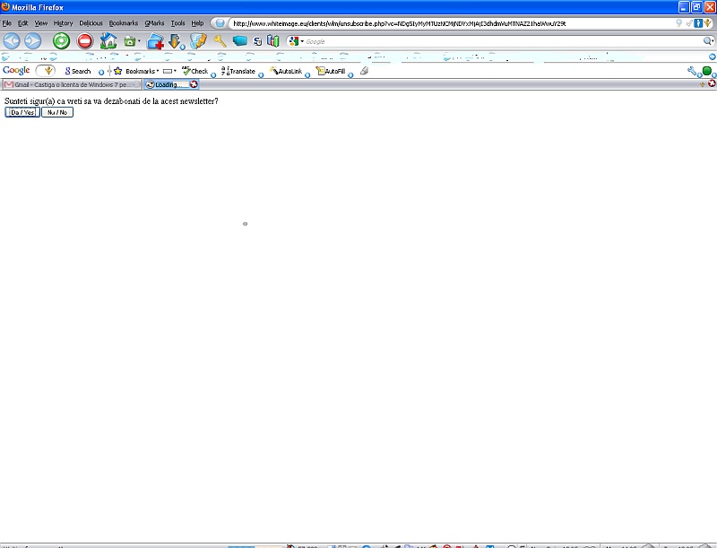 Și tot de pe mail, vrând să mă dezabonez la un newslwtter al unui site din România, scris integral în românește, de către niște scumpi conaționali. Yes?!?!?