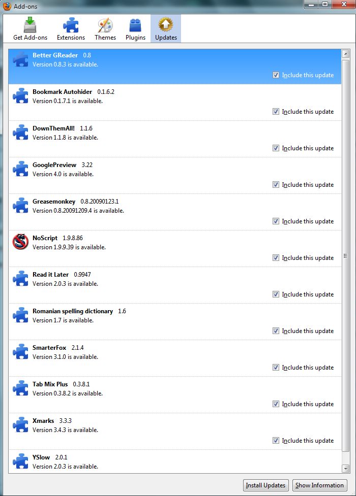 Acum câteva momente dau să-mi găsească ceva update-uri, mai mult în joacă. Rezultatul mai jos: