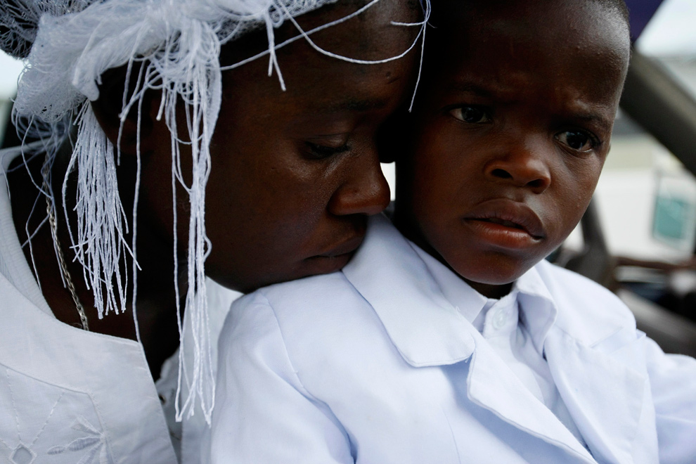 Hainele le sunt ca pentru o petrecere, dar ochii îi trădează… Cum v-a putea cineva să îi explice puștiului din imagine, motivul pentru care frățiorul lui mai mic nu mai este?