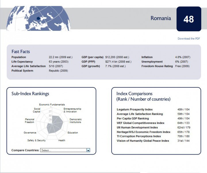 Via Sorin aflu că cercetătorii britanici aka un ONG englezesc pe numele lui Legatum Institute au făcut un clasament al prosperității bazat pe factori de tipul: Sănătate, educație, tipul de guvernare, instituții democratice, inovație și spirit antreprenorial.