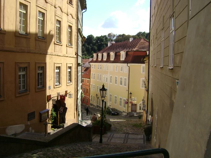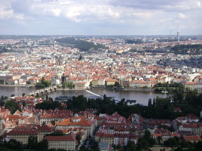 Ne-am întâlnit complet întâmplător cu Clădirea dansatoare, am traversat râul de data asta pe alt pod decât Charles Bridge, am urcat cu funicularul la Petrin Hill, am vrut la Observatorul astronomic (el n-a vrut, cică era închis), ne-am plimbat printr-o imensă grădină de trandafiri, ne-am pierdut prin parcul împrejmuitor și-am căutat ieșirea din complex timp de vreo 2 ore ajungând pe la Stadionul Strahov , ne-am întors după acest mic ocol în vârful Petrin-ului, ne-am căutat/regăsit puțin prin Labirintul Oglinzilor, doamna a urcat în vârful Turnului Eiffel cehesc timp în care eu m-am întreținut politicos și eficient cu 2 blonde, am urmărit o roșcată cu coada stufoasă, am salutat cocheta ambasadă a României și pe Mihai Viteazul de pe fațada ei, am mâncat – soața – un kurtos kalacs (după rețetă originală venită din România după cum scria pe firmă), un cârnat – eu – incredibil de crocant/picant/sățios/gustos/ieftin/etc am pițipongit puțin prin Piața Wencesles și împrejurimi (am încercat și puțin shopping dar nu ne-au plăcut foarte tare preţurile