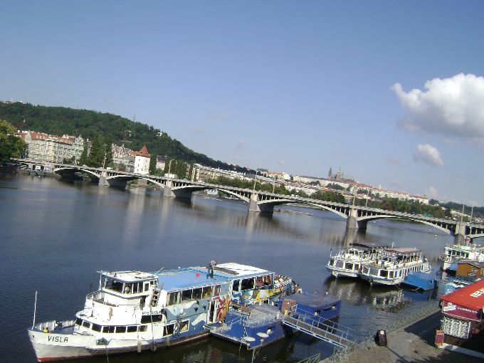 Am schimbat traseul (inutil să spun că ne-am și semi-rătăcit un pic, doar eu eram ghidul!) și ne-am început ziua cu o plimbare pe malul râului Vltava. Lunea dimineața, început de toamnă senină, calmă, puțin răcoroasă dar fabulos de liniștită. Unele dintre cele mai revigorante momente din cele patru zile le-am avut atârnați pe podurile pe care le întâlneam în drum.