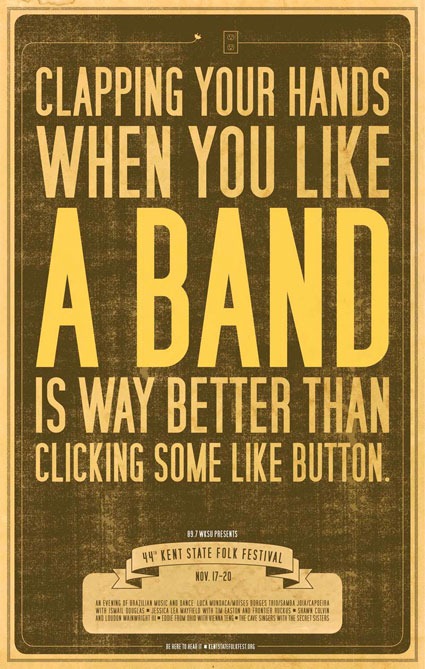 Reclamă muzicii Posted on Noiembrie 18, 2010Noiembrie 18, 2010 by Vali Câteva printuri pentru un festival de muzică folk, reclame cu mult și dur adevăr în ele. Via