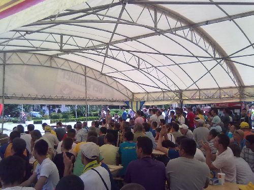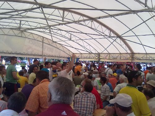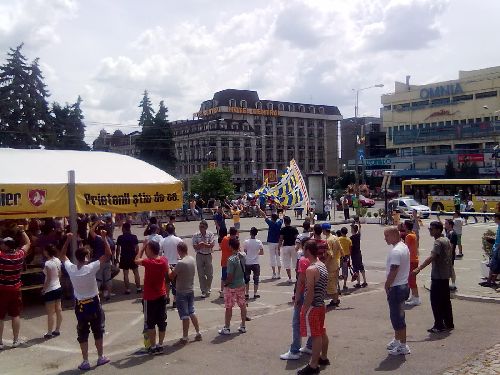 Am reușit să ajung astăzi în centrul orașului la ecranul și terasa special amenajate pentru ploieșteni. Era deja 1-0 pentru ai noștrii și câteva sute de persoane trăiau meciul live, cântând, scandând și încurajându-și echipa favorită.